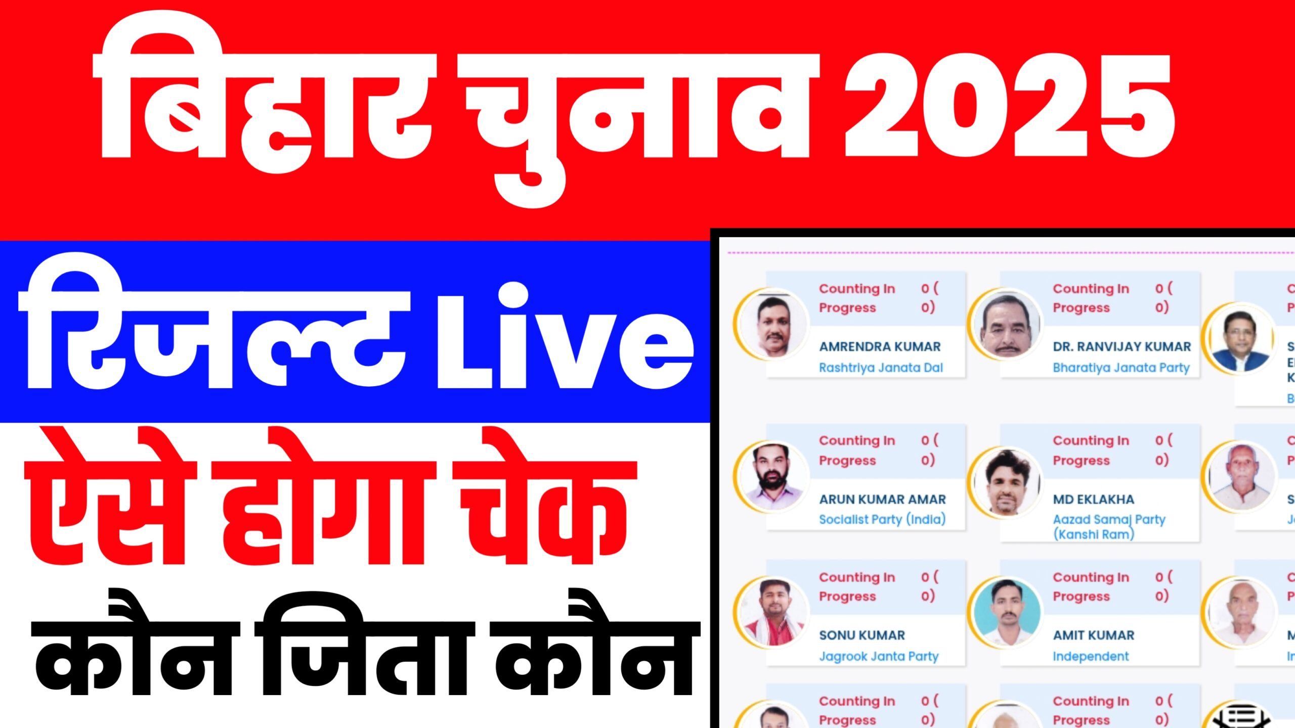 2. चुनाव आयोग की साइट: दूसरी विश्वसनीय जगह है [Election Commission of India](https://results.eci.gov.in)। यहाँ भी सभी राज्यों के चुनाव, विशेष रूप से बिहार विधानसभा चुनाव के लाइव परिणाम मिलते हैं। ये नतीजे Returning Officers के द्वारा विभिन्न काउंटिंग सेंटरों से सीधे अपडेट होते हैं।